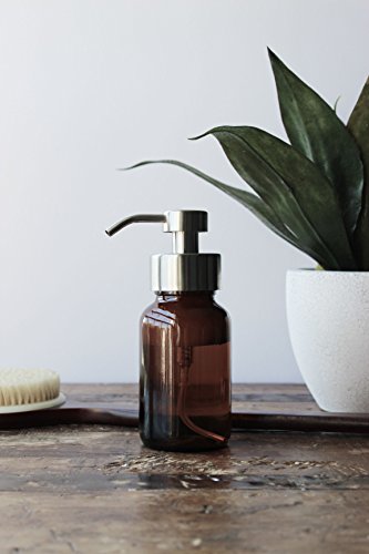 Amber Glass Apothecary Foaming Soap Dispenser Metal Pump, for Kitchen or Bathroom Counter-top Dispenser Amber Glass / Stainless Metal Pump