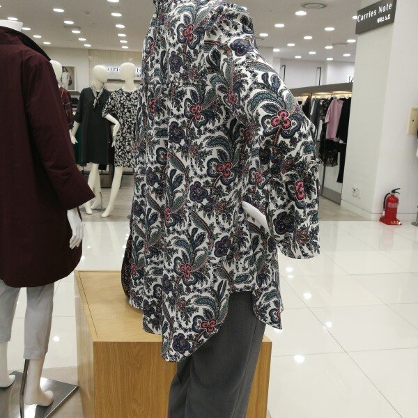 폴리에스테르소재의 브라우스입니다자켓이나 트렌치코트에 코디해도잘어울리는 브라우스입니다단품으로 입으셔도예쁩니다