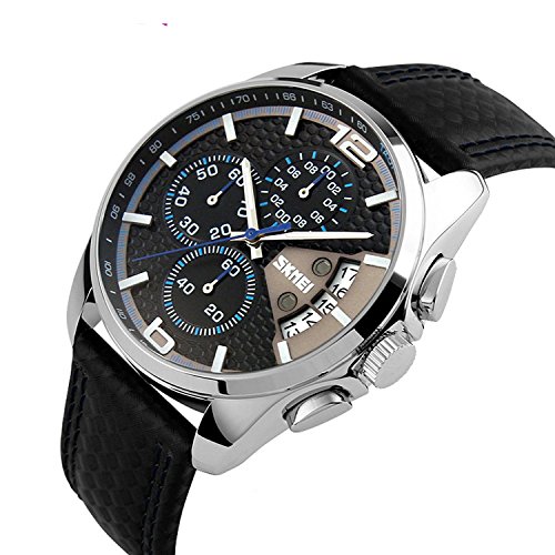 -. Title : Men's Quartz Analog Sports Chronograph Waterproof Wristwatches Black leather Strap Skmei 9106 Blue