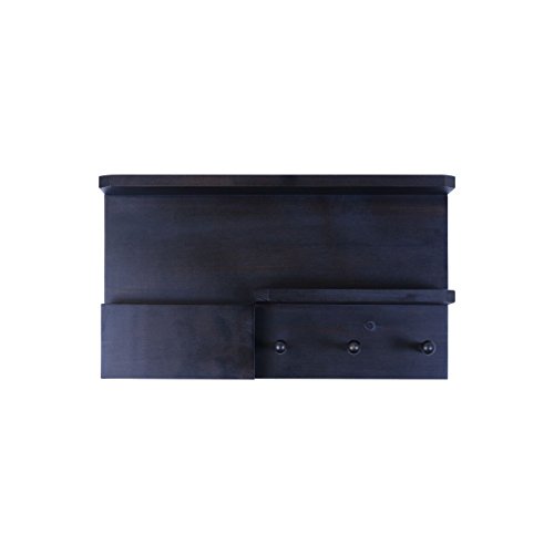 Entryway organizer Coat Hat Rain Rack with shelf Mail and letter holder Pine Wood with 3 peg holders 21wx12" h x 4.5" deep by Rooms Organized (Walnut)