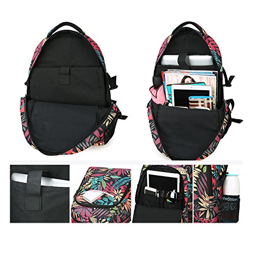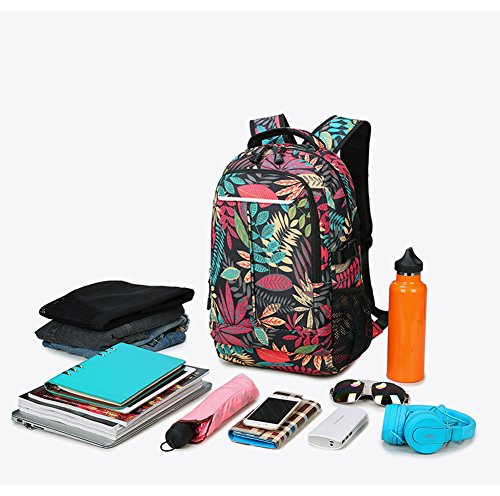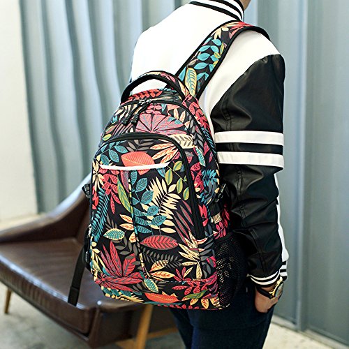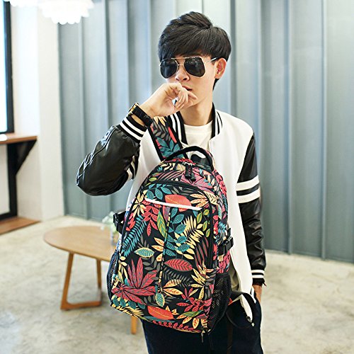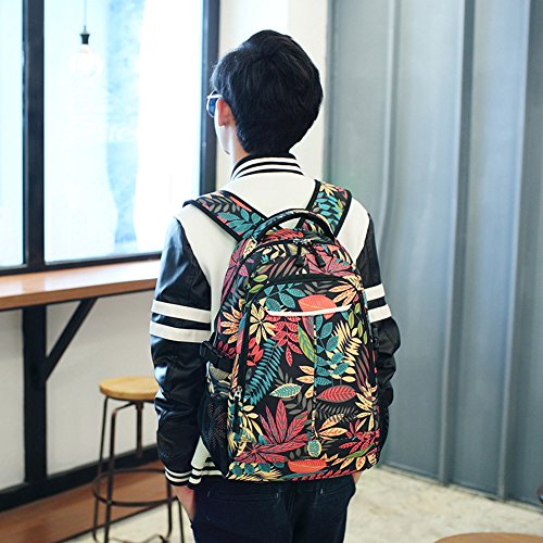 MiCoolker Leaves Pattern Casual Canvas Travel Backpack Student Satchel Bag Fashion Laptop Shoulders Bag for Men and Women