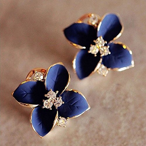 Demarkt Fashion Elegant Cute Lady Girls Blue Flower Crystal Ear Stud Earrings by Lemonc