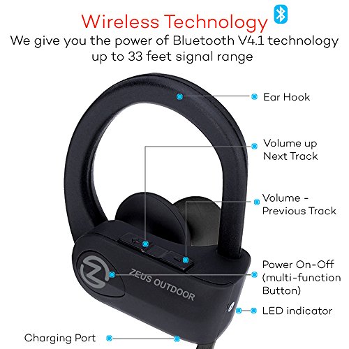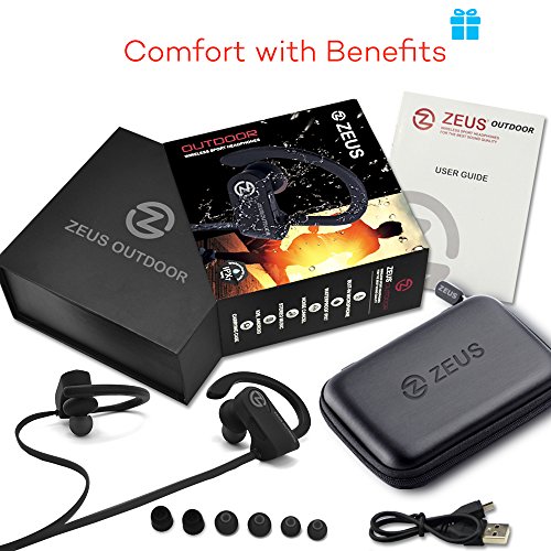 -. Binding : Electronics -. Brand : ZEUS -. Color : black -. EAN : 0654329557266 -. Feature : •✅ WHAT IS IMPROVED? Using new wireless headphones speakers, we achieved a better balance between deep bass and clear midrange. With new innovations of Nano technologies coating we improved IPx7 waterproof. / •✅ WIRELESS BLUETOOTH HEADPHONES - the best running headphones. Perfect sport headphones for any indoor - outdoor activities. Waterproof sport headphones with secure over ear hooks stay put on during your workout. / •✅ WORKOUT HEADPHONES WITH NOISE CANCELLING MIC: Wireless headphones with mic noise cancelling and CVC 6.0 technology reduces outside noise and offers clear sound while making calls. / •✅ WIRELESS HEADPHONES - UNIVERSAL CONNECTIVITY: 4.1 technology with APT-X compression allows easily pairing to any wireless devices up to 33 feet. Bluetooth earbuds can pair two devices at the same time. / •✅ UP TO 8 HOURS: Sport headphones in ear provide up to 8 hours of play time on average volume. It takes just up to 2 hours to full charge. GET 100% SATISFACTION and a TWO-YEAR WARRANTY -. Label : Zeus Future Technology -. Manufacturer : Zeus Future Technology -. ProductGroup : Speakers -. ProductTypeName : AUDIO_OR_VIDEO -. Publisher : Zeus Future Technology -. Studio : Zeus Future Technology -. Title : Wireless Bluetooth Headphones Zeus IMPROVED 2017 - Best Wireless Earbuds w/ Mic Noise Cancelling - Workout Headphones - Running Headphones - Sport Headphones - IPX7 Waterproof Headphones for Women Men -. UPC : 654329557266