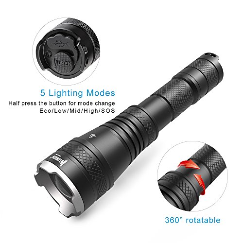 - [USB RECHARGEABLE]: LEDs boast an extended 100000-hour lifespan and comes complete with a rechargeable 18650 battery.Using our USB cord,connect the flashlight and power supply directly , such as computer, laptop, phone charger, car charger, etc.