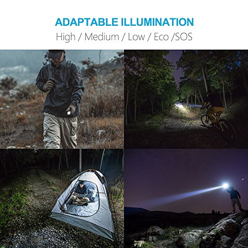 - [SUPER-BRIGHT]: LT35 Led tactical flashlight Utilizes a genuine high-performance, high-efficiency Cree LED XPL-L2 V5 chip (100% Imported ),using a good design PCB, MAX can be 1200 Lumens . Spotlight beam can shot far to 1050ft (320 meters) .Fully zoomable from wide to narrow beam. Features 5 adaptable settings: Eco/Low/Medium/High/SOS.