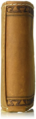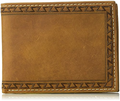 Studio : Ariat Publisher : Ariat Binding : Apparel Product Description This medium brown Ariat bi-fold wallet by medium and f western products has a beautiful Aztec design around the edges with a white accent border stitching. Inside features multiple compartments for your credit cards, cash, and an id window. 0