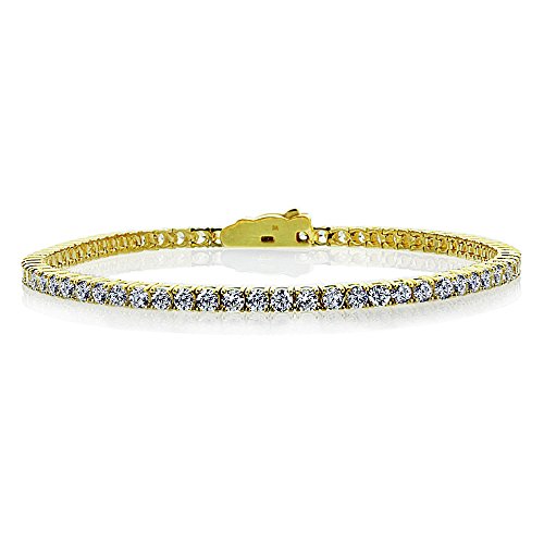 -. Title : 14K Gold 2.5mm Round Cubic Zirconia Prong Set Tennis Bracelet