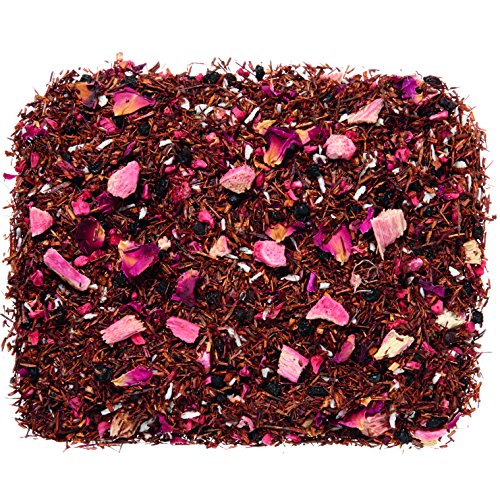 -. Feature : A perfect symbiosis of the fruity, sweet and juicy raspberry is ideally complemented by the slightly tangy, nippy rhubarb / Combined with smooth vanilla flavors and carried by the mild Rooibos base, they are transformed into the master of happiness and offer harmony and perfection in every cup / Ingredients: Rooibos tea, elderberries, coconut peel, flavoring, freeze-dried raspberry and rhubarb pieces, rose petals / No artificial flavoring added Great alternative to soft drinks / Great for making iced tea