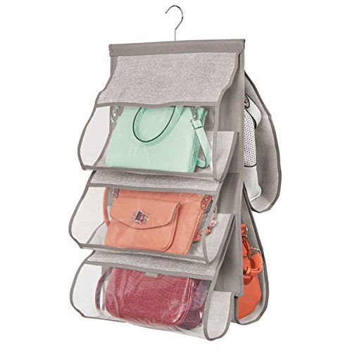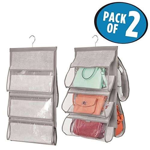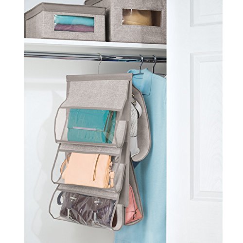 - HASSLE-FREE INSTALLATION: Hangs over closet rod, hook, or bar - neatly store purses, clutches, pocket books, shoulder bags and more!