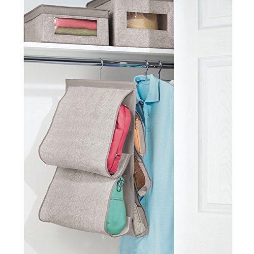 mDesign Fabric Hanging Closet Storage Organizer for Purses, Handbags, Clutches - Pack of 2, 5 Pockets, Linen