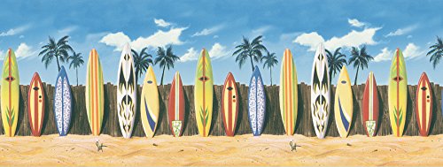 -. Title : Wallpaper Border Surfboards on Wood Fence on Sandy Beach Palm Trees