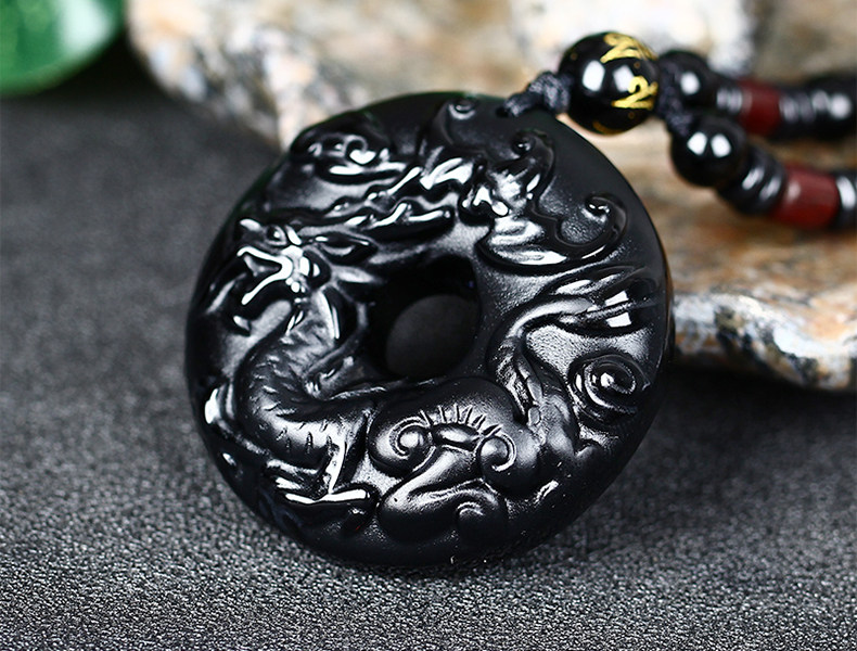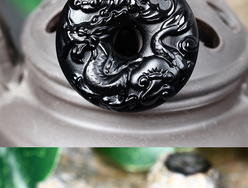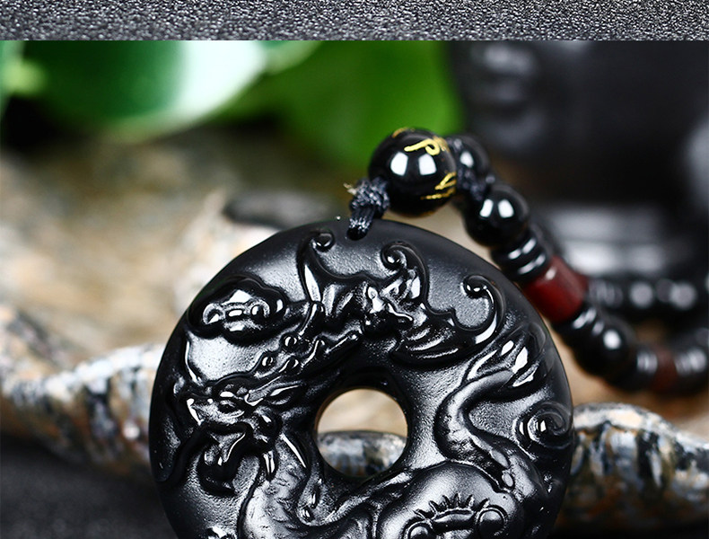 仙蝠迎春属龙开光吉祥物吊坠彩虹眼黑曜石项坠
