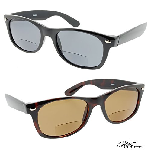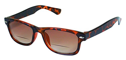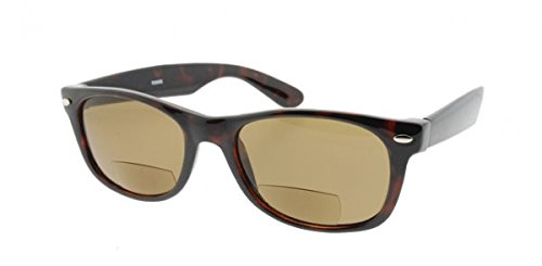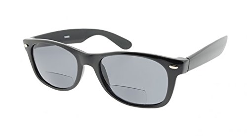 Product Description Wayfarers are a true classic from generation to generation and these Bifocal Reading Sunglasses live up to the legend in looks and style. The medium-sized high quality frames are hand polished to a gloss finish. The lightweight polycarbonate bifocal lens are lightly tinted and do a great job of cutting glare when reading in bright sunlight without being too dark. UV400 protection blocks 100% of harmful UVA and UVB rays from the sun. Very nice reading sunglasses that are a great value for the money. 0