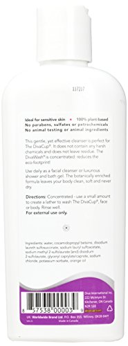 This gentle, yet effective cleanser is perfect for the DivaCup?. It does not contain any harsh chemicals and does not leave residue or fragrance. The DivaWash? is concentrated: reduces the eco-footprint! Use daily as a facial cleanser or luxurious shower and bath gel. The botanically enriched formula leaves your Diva body clean soft and never dry. Free of animal testing, animal ingredients, parabens, sulfates and petrochemicals. Disclaimer: These statements have not been evaluated by the FDA. These products are not intended to diagnose, treat, cure, or prevent any disease.Feature