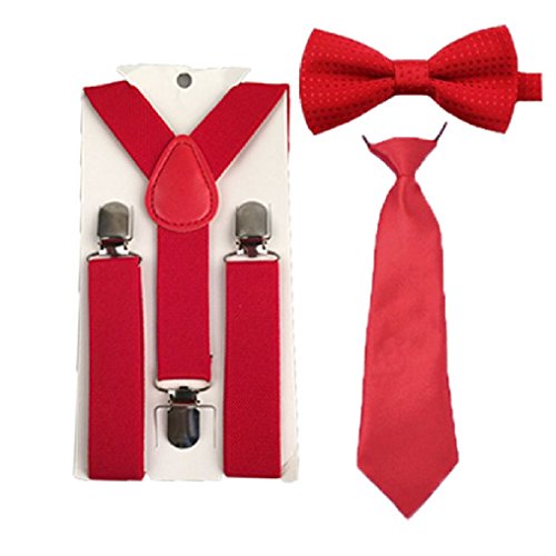 Binding : Apparel Product Description 100% New and High Quality! Material:Polyester Package include:Suspenders Bowtie TieSuitable for height: 100cm-130cm Available Size: Suspenders:Length about 65cmWide about 2.5cm Bowtie:Length about 10cmWide about 6cmTie:Length about 28cmWide about 6.5cm Main Color: 01# Redplease be aware the color appearance can be vary due to different screen£¬display resolution and lights conditions. 0