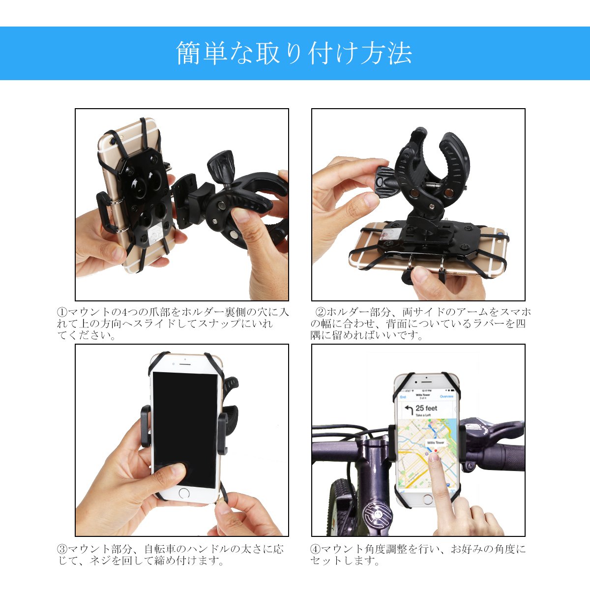 Applicable to traffic tools with a handle from 5 cm to 10 cm in width, ensuring the safety of mobile devices with perfect safety design concept.