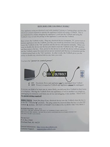 The Volt Bolt's 4 foot electrical cord makes it easy to keep everything plugged in without having to climb behind home entertainment centers or find a wall plug. Just turn the key and the device is off.
