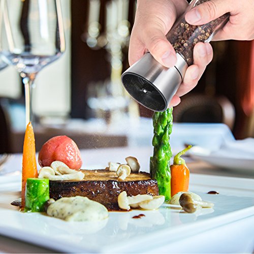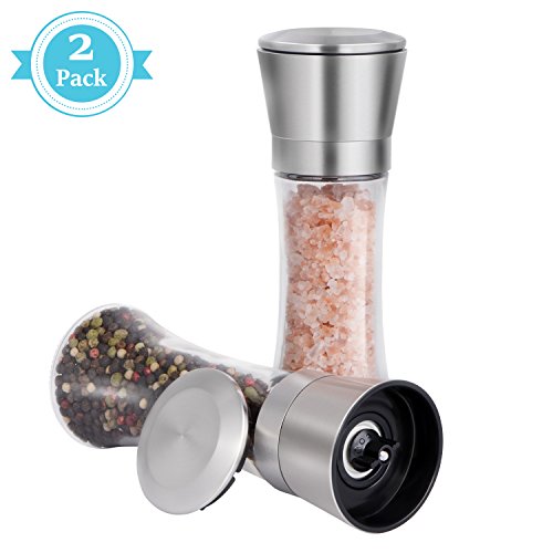 Adoric Life Salt and Pepper Grinders Set of 2, Brushed Stainless Steel Pepper and Salt Mill Shakers with Adjustable Ceramic Rotor for Himalayan Salt, Sea Salt, Pepper and More