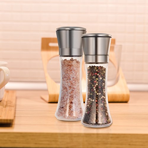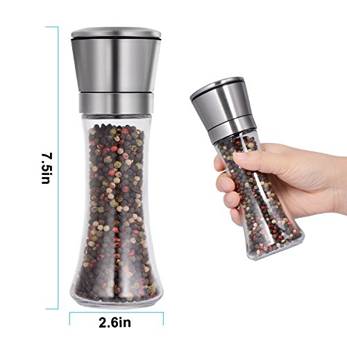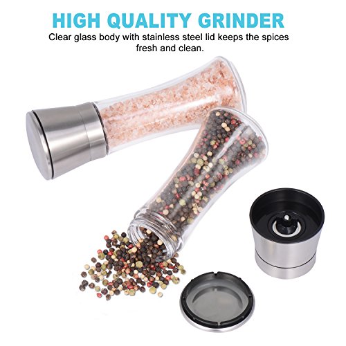 - 【6 Oz Large Capacity】Clear tall glass body with 6 Oz large capacity can contain more spices than normal grinders, allowing lasting time to use. Clear glass body see the spices inside and easy to clean.
