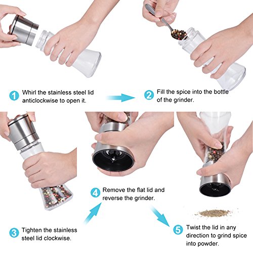 - 【All Kinds of Grinding】The grinding core is made of ceramic material, which is durable to use and easy to wash. Use for peppercorn, sea salt, Himalaya salt, cumin, cloves, sesame and more seasonings.