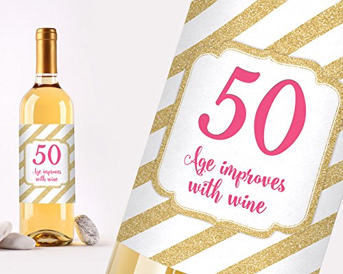 50th BIRTHDAY GIFT - Our wine bottle labels make the perfect birthday gift for women. Apply the labels to your favorite wine and serve in a gift basket.