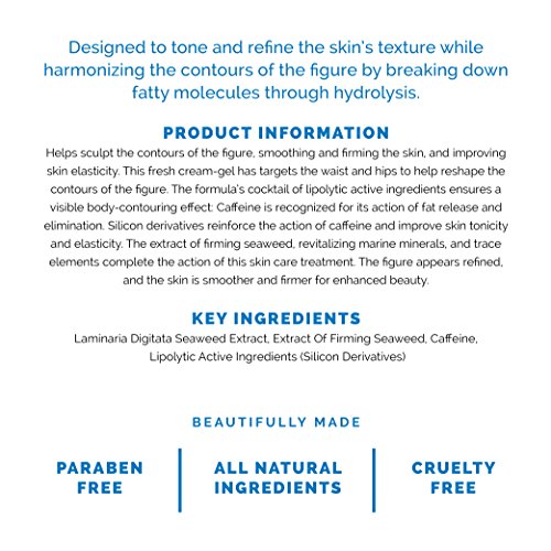 ABOUT THIS PRODUCT SCARLETT PARIS® Cellu-Shaping Gel helps sculpt the contours of the figure, smoothing and firming the skin, and improving skin elasticity. This fresh cream-gel has targets the waist and hips to help reshape the contours of the figure. The formula's cocktail of lipolytic active ingredients ensures a visible body-contouring effect: Caffeine is recognized for its action of fat release and elimination. Silicon derivatives reinforce the action of caffeine and improve skin tonicity and elasticity. The extract of firming seaweed, revitalizing marine minerals, and trace elements complete the action of this skin care treatment. The figure appears refined, and the skin is smoother and firmer for enhanced beauty.