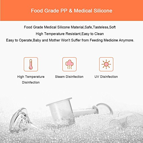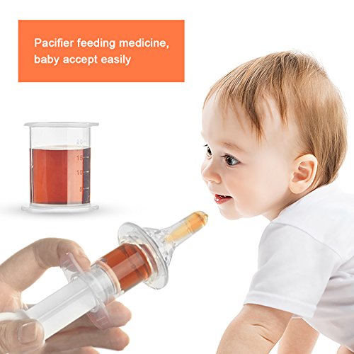 -. Feature : Special Design Keep Baby From Choking :Nipple Shape,More Easy for Baby to Accept It / Food Grade Medical Silicone Material,Safe,Tasteless,Soft High Temperature Resistant,Easy to Clean Easy to Operate / Baby's favorite soft medicine feeding head:Moderate hardness not only make thebaby feel soft and comfortable whileeating medicine,but also keep the stiffness of the pacifier,no deformation. / Designed Wth Measuring Line, The scale of the measuring cup is 5ml,10ml,15ml,20ml respectively,parent can control the intake accurately. / Not only for feeding medicine,but also for drinking healthy juice Feed your baby with juice frequently will make your baby's nutrition more balanced.