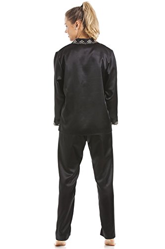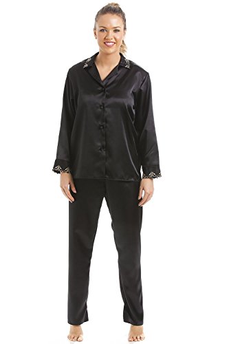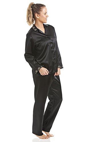 -. Title : Camille - Damen Luxus-Schlafanzug aus Satin - langärmliges Oberteil & lange Hose - schwarz