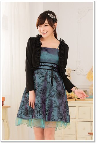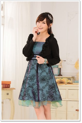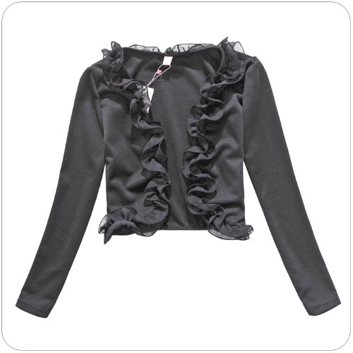 원본상품명: ノ?ブランド長袖フリルボレロ 結婚式 フォ?マル ブラック ピンク ホワイト LL 3L 4L 大きいサイズ (LL, ブラック)