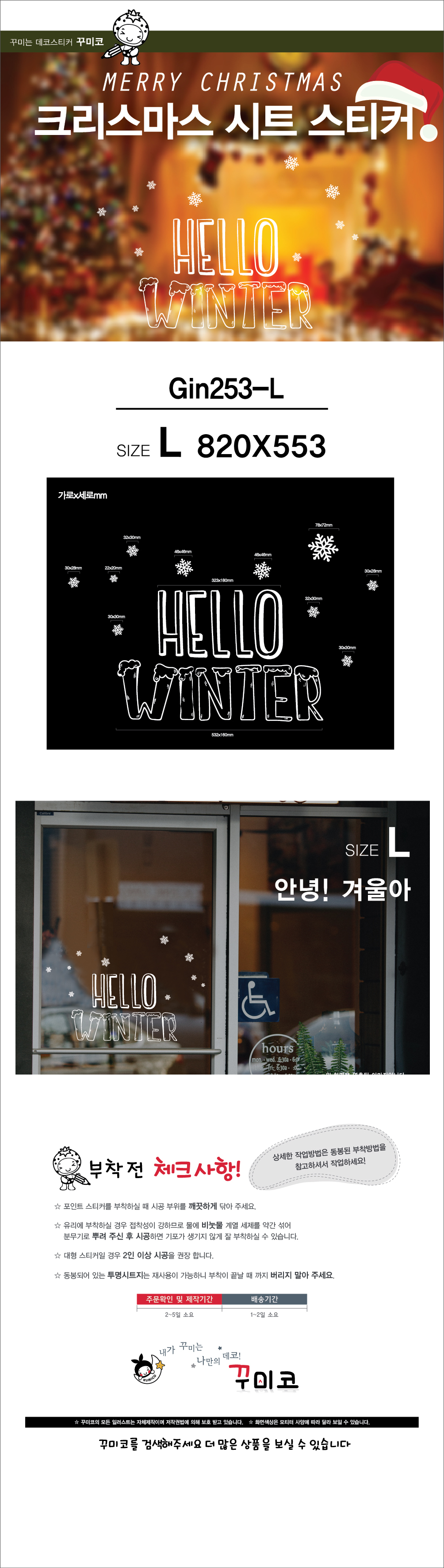 Coffee shop Christmas cardboard sticker Hello! Winter A L: 820X553 25 windows