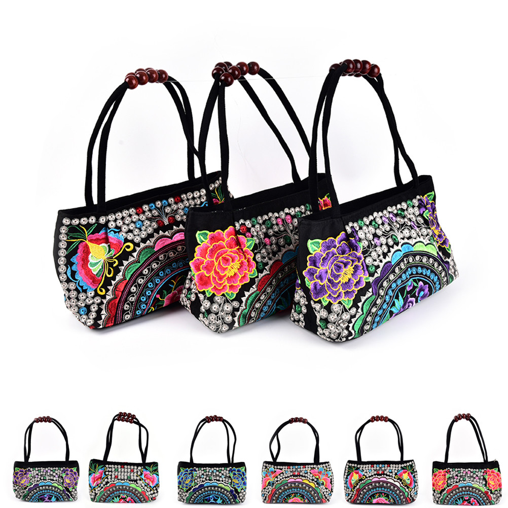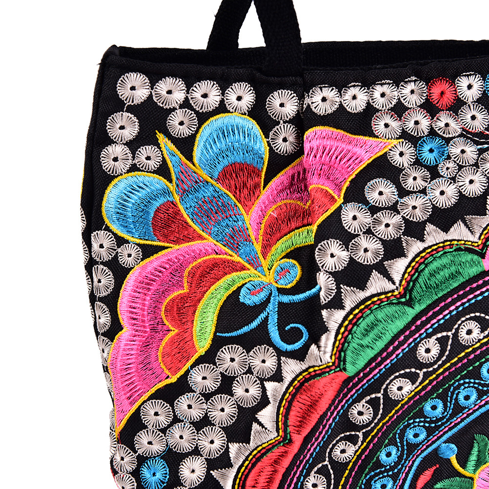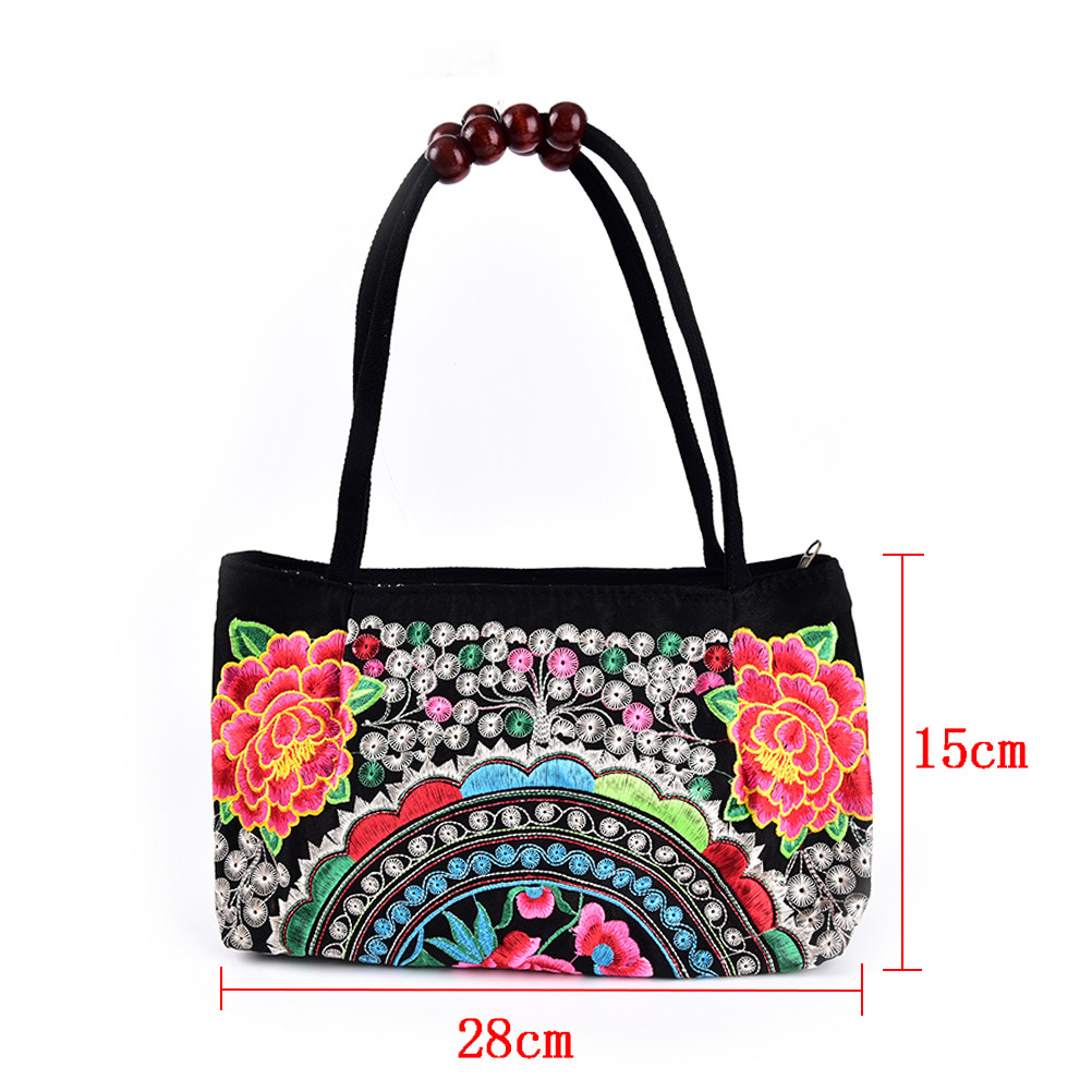 Features: Flower Print, Zipper Closure Bag, Embroidery, Size: as shown
