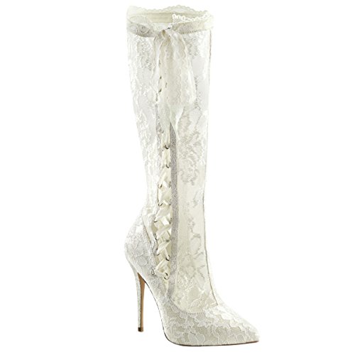 Womens Ivory Dress Shoes Lace Boots Pointed Toe Knee High Boots 5 Inch Heels