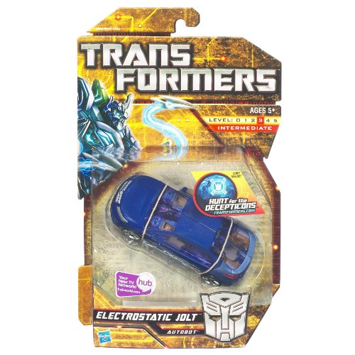-. Binding : Toy -. Brand : Transformers -. EAN : 0653569516415 -. Feature : Turn the tables on enemy forces when you throw this warrior into the fight / Your ELECTROSTATIC JOLT figure is dedicated to destroying any opponent and his flip-out electro-whip accessories will help you two get the job done / If robot combat turns into a car chase, convert your hero into Chevy Volt car vehicle mode accessories and send him racing off to rule the "road" / Battle-ready robot-to-vehicle figure converts from robot mode to Chevy Volt car vehicle mode - and back again / Robot mode features flip-out "electro-whips" -. Label : Hasbro -. Manufacturer : Hasbro -. Model : 20905 -. MPN : 20905 -. PackageQuantity : 1 -. PartNumber : 20905 -. ProductGroup : Toy -. ProductTypeName : TOYS_AND_GAMES -. Publisher : Hasbro -. SKU : 5B2A0093 -. Studio : Hasbro -. Title : Transformers Deluxe Movie Collection - Electrostatic Jolt -. UPC : 653569516415