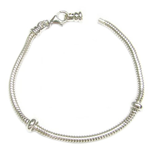 -. Binding : Jewelry -. Brand : Queenberry -. Department : womens -. Feature : Easy to take off end cap - screw off the end cap to put on the stoppers and other charms. / Includes 1 pc of bracelet (3mm chain size), 2 pcs of stoppers / Solid 925 Sterling Silver in Polished Finish / Hole size of the stopper can extend from 2mm to 4mm. / Fully compatible with European bead charms. -. Label : Queenberry -. Manufacturer : Queenberry -. ProductGroup : Jewelry -. ProductTypeName : FASHIONNECKLACEBRACELETANKLET -. Publisher : Queenberry -. Studio : Queenberry -. Title : Sterling Silver 3mm CaP.R.Ice Snake Bracelet with 2 Rubber Stoppers For European Bead Charms