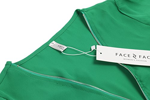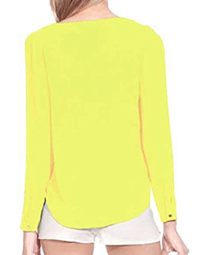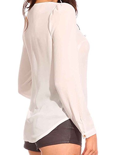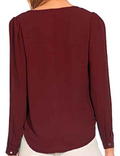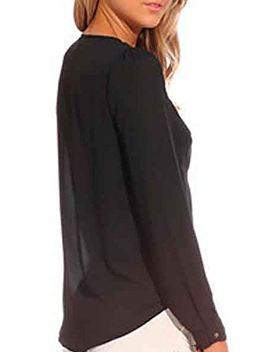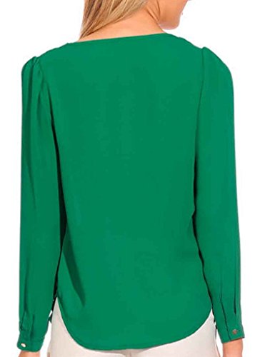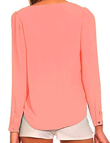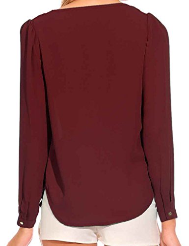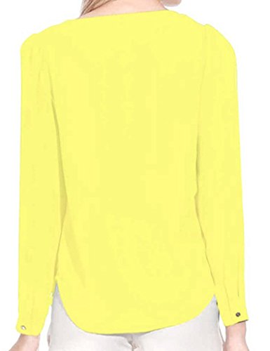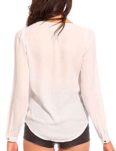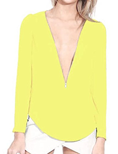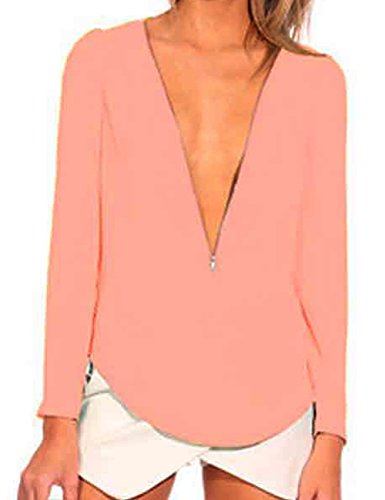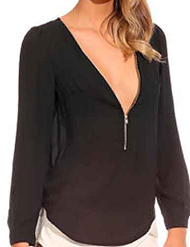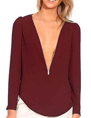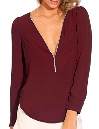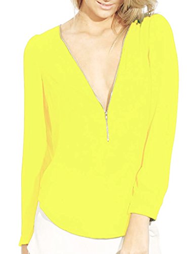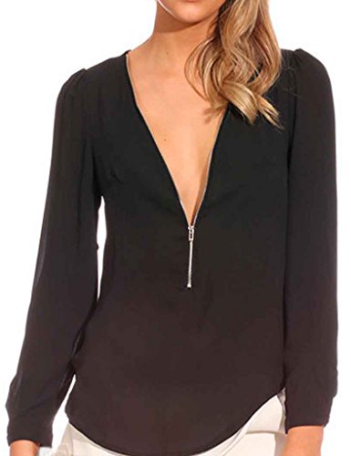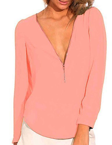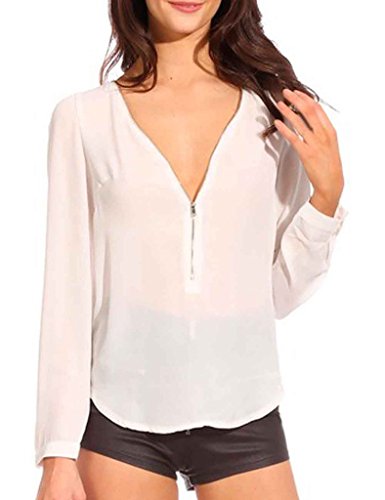 | FACE N FACE Women's Chiffon Long Sleeve V Neck Zipper Shirt Blouse |