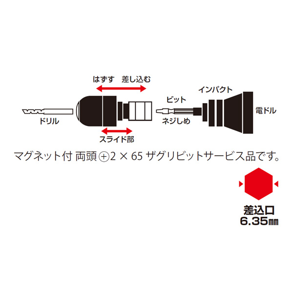 ●マグネット付両頭+2×65(ザグリビットサービス品)