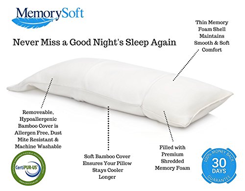 -. Title : Luxury Memory Foam Body Pillow By MemorySoft, Shredded Memory Foam With Thin Memory Foam Shell - Washable, Hypoallergenic and Cool Bamboo Case