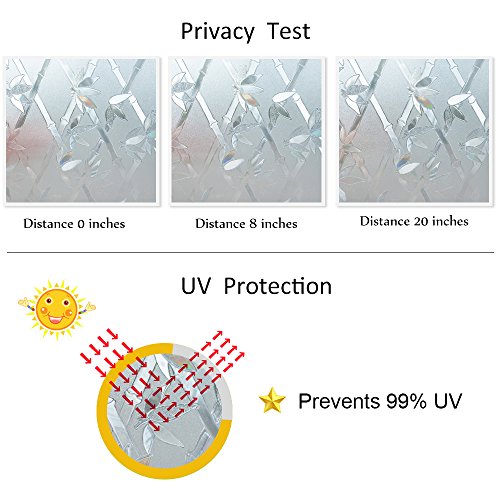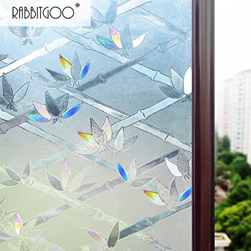 -. Title : Rabbitgoo® No Glue Static Cling P.R.Ivacy Glass Frosted Bamboo Flower Window Films 2.95ft By 6.5ft (35.4In by 78.7In)