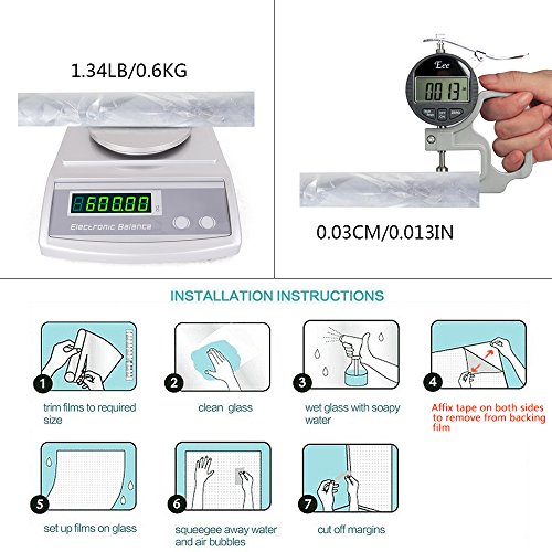 -. Feature : Environmental & Static speciality: DIY with water, no glue static cling, easy to peel off, reusable, no trace left, environmental protection / 99% UV protection & Reduce using air conditioning times, Low-carbon and energy conservation. / 3D design: normal thickness creates cubic artistic effect. Sun refraction brings pretty rainbow effect and creates P.R.Ivacy. / Applicable area: rental apartment, bathroom, kitchen, lobby, porch, office, etc. / Size: 2.95 Ft(W) x 6.5 Ft(L) Per Roll. (NO SPATULA OR SQUEEGEE)