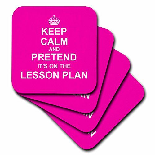 -. Brand : 3dRose -. Feature : Dimensions (in inches): 3.5 H x 3.5 W x 1/4 D / Comes in a set of 4 - same image on all coasters / Washable - to prevent image from fading clean with mild detergent using cool water / Absorbs moisture / Made of recycled rubber -. Label : 3dRose LLC -. Manufacturer : 3dRose LLC -. ProductGroup : Kitchen -. ProductTypeName : KITCHEN -. Publisher : 3dRose LLC -. Studio : 3dRose LLC -. Title : InspirationzStore Typography - Hot Pink Keep Calm and Pretend its on the Lesson Plan fun teacher gift - Coasters
