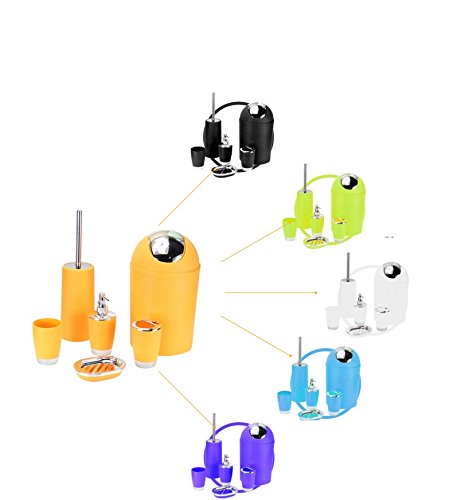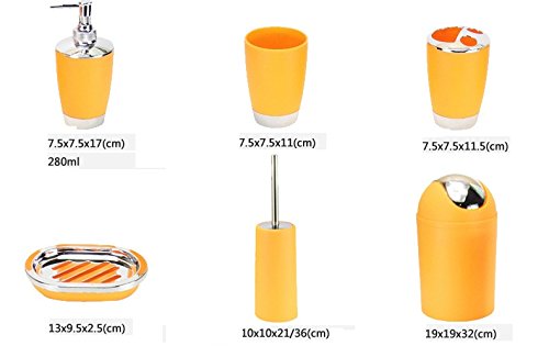 -. Title : Fangfang 6 Piece Plastic Bath Accessory Bathroom Set - Lotion Dispenser,Toothbrush Holder,Tumbler Cup,Soap Dish, Trash Can,Toilet Brush Set