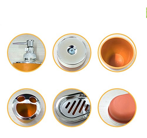 -. Feature : Bath Accessory Bathroom Set with lotion dispenser, toothbrush holder, tumbler cup, soap dish, trash can and toilet brush. / CAPACITY: Lotion dispenser: 280ML. Toothbrush holder: 2.95*2.95*4.52inch / 7.5*7.5*11.5cm. Tumbler cup: 2.95*2.95*4.33inch / 7.5*7.5*11cm. Soap dish: 5.12*3.74*0.98inch / 13*9.5*2.5cm. Trash can: 7.48*7.48*12.60inch / 19*19*32cm.Toilet brush: 3.94*3.94*8.27/14.17inch / 10*10*21/36cm / MATERIAL: PS( Durable and easy to clean) / Perfect for bathroom / TOOTHBRUSH HOLDER stores 4 toothbrushes, TUMBLER for drinking, rinsing, or storing makeup brushes, tweezers, and razors