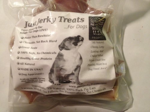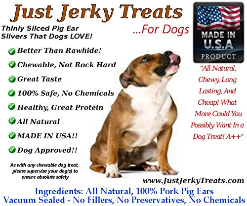 -. Binding : Misc. -. Brand : Just Jerky Treats -. Feature : 100% Natural Pig Ear Slivers & Pieces. No Fillers, Preservatives, or Chemicals. / Made From Real Pig Ears! No "Mystery Meat" or "Artificial Pork By-Products" Allowed! / Soft, Chewable, & Long Lasting. Not Rock Hard. A Great Taste That All Dogs Love! / Vacuum Sealed to Lock In Freshness & Flavor. *Refrigerate After Opening To Keep Fresh* / Made & Packaged In The USA. Pig Ears Sourced ONLY From The USA. Nothing From China! -. Label : Just Jerky Treats -. Manufacturer : Just Jerky Treats -. PackageQuantity : 1 -. ProductGroup : Pet Products -. ProductTypeName : PET_SUPPLIES -. Publisher : Just Jerky Treats -. Studio : Just Jerky Treats -. Title : 100% Natural Pig Ear Slivers & Pieces. USA Made. No Chemicals. No Preservatives.