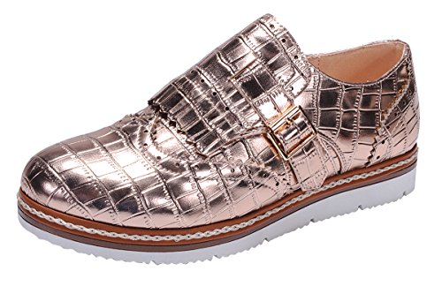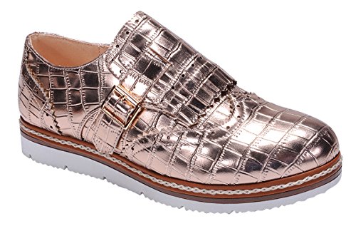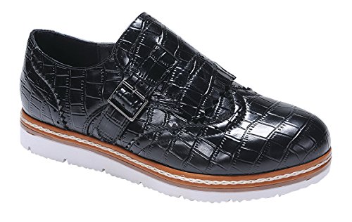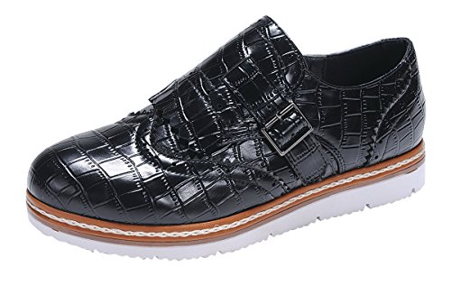 Nature Breeze Women's Wingtip Loafer Croc Embossed Flatform Oxford Shoe