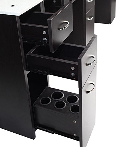 Studio : J A Publisher : J A Binding : Misc. Product Description The JA Double White Granite Top Nail Table is both sleek and modern making it the perfect workstation for any busy spa or salon. This double nail table is as comfortable as it is functional, with a rich walnut finish and a white, minimalist granite top. The JA Double White Granite Top Manicure Table is perfectly sized to accommodate two nail technicians, the compact design means you can save space, and the white granite top is extremely easy to clean. This double nail table is easy to assemble and it comes on four strong wheels for easy mobility throughout your spa or salon. There is plenty of space for all your tools, with two UV dryer slots, pre-drilled hole so you can install your own nail table light, six functional drawers to store your larger bottles, and a specialized trash compartment, there's room for everything. The JA Double White Granite Top Nail Table is functional comfortable, and is the best table to help you get the most out of your space! 0