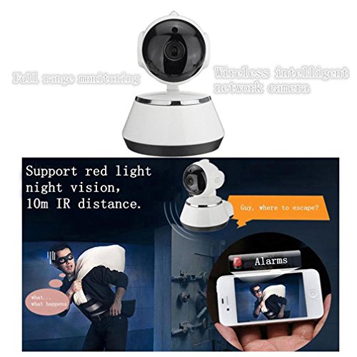 -. Feature : Resolution:1280x720,1.0MP, HD 720p at 25fps, 3.6mm lens with 1/3 progressive CMOS sensor. Provide a high quality image and video watching experience. 6 LED night version, with IR-CUT Auto Switch Filter, the camera will auto switch to night vision when it's dark. / Pan/Tilt/Zoom Function: Combined with 355°horizontal & 90° vertical rotation range, creating a complete 360°coverage, support manually fine-tune the lens to make the focus image, not miss any corner in your home, suitable for large areas that need a quick scan up/down/left/right remote control in your smartphone. / Motion detection and two-way audio: High sensitive alarm function, 7x24hours real-time to ensure the safety of your home and property. Built-in two-way talking with 3D Digital Noise Reduction, providing high quality auditory sense and talking effect. / Strong record function: unless record in TF card, you can download the record in your smartphone to save the record forever.Onvif and Multi Network Protocols support, just full enjoy mufti-platforms video sharing on IOS, Android, Windows PC, Tablet etc / Easy setting: Support both Wireless and Wired network configuration. Please note that no rechargeable battery built-in, need the power in connected,we provide US plug. Do not support 5Ghz wifi signal !