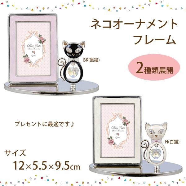 素敵なネコが思い出の1枚に華を添えます。プレゼントに最適です。 製造国:中国 素材・材質:亜鉛合金、ガラス、エポキシ、ラインストーン、スワロフスキー 商品サイズ:12×5.5×9.5cm 仕様:収納可能サイズ:縦8×横5cm・1枚 ※サプライヤー直送品  ご注文後、当日~1営業日後の出荷となります【商品名】ネコオーナメントフレーム G-4330 BK(黒猫)
