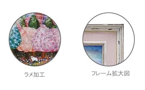 絵の表面に特殊ゲル加工、ラメチップ加工を施しています。子猫のモチーフが可愛いアートです。