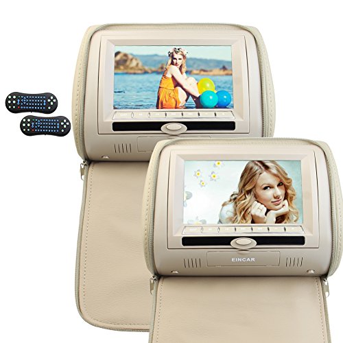 -. Feature : 7Inch HD 800*480 digital screen car headrest dvd player,compatible with DVD, DVDR/W, CD, CDR/W, VCD, MP3, MP4 multimedia car entertainment system / Built-in IR/FM transmitter,support outputting audio via wireless transmission,also support IR headphone,but not include headphones. / support 32bits games,and you can enjoy your journey,you can also dowanload more games through the internet into the USB or SD card.Comes with wireless multi-function remote control,which can be used as a game pad / Each Eincar headrest comes with its own zippered pillow. Both of them have DVD Player, you can watch the same movie on both headrests, or watch 2 individual DVDs, Sony Brand laser disc reader which provides Excellent Picture Quality / More color optional(Black,Gary,Beige),please let us know before making order.Easy to install and remove,12-month customer service for guarantee.