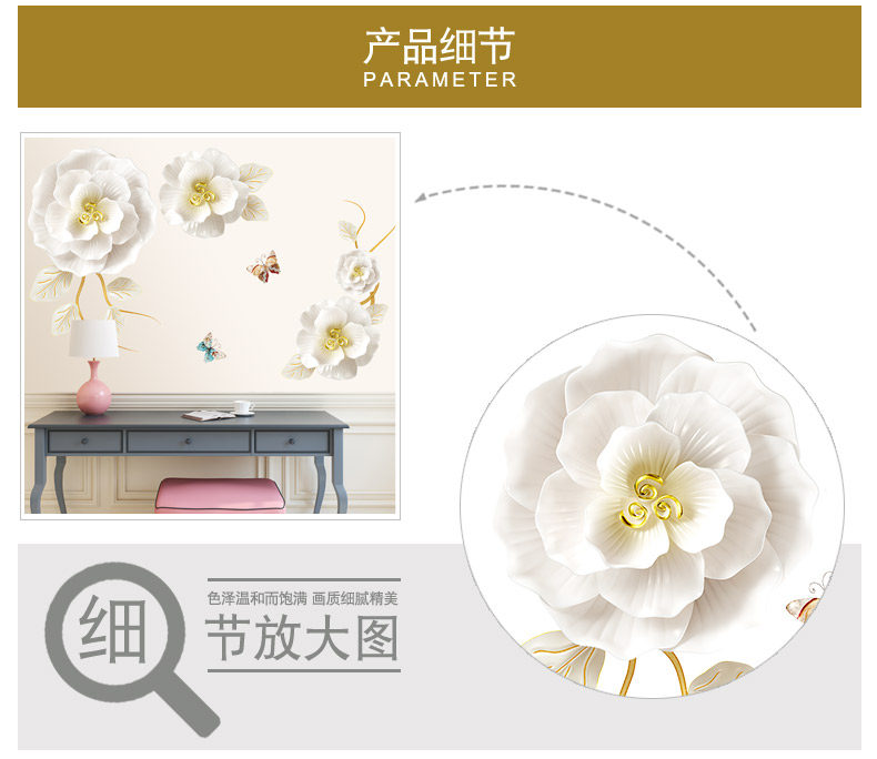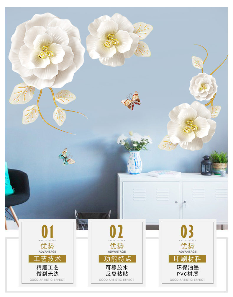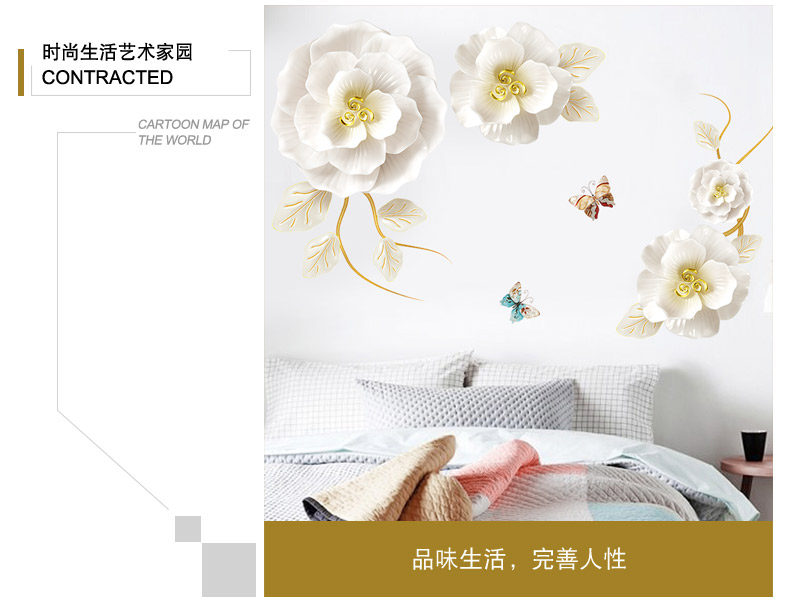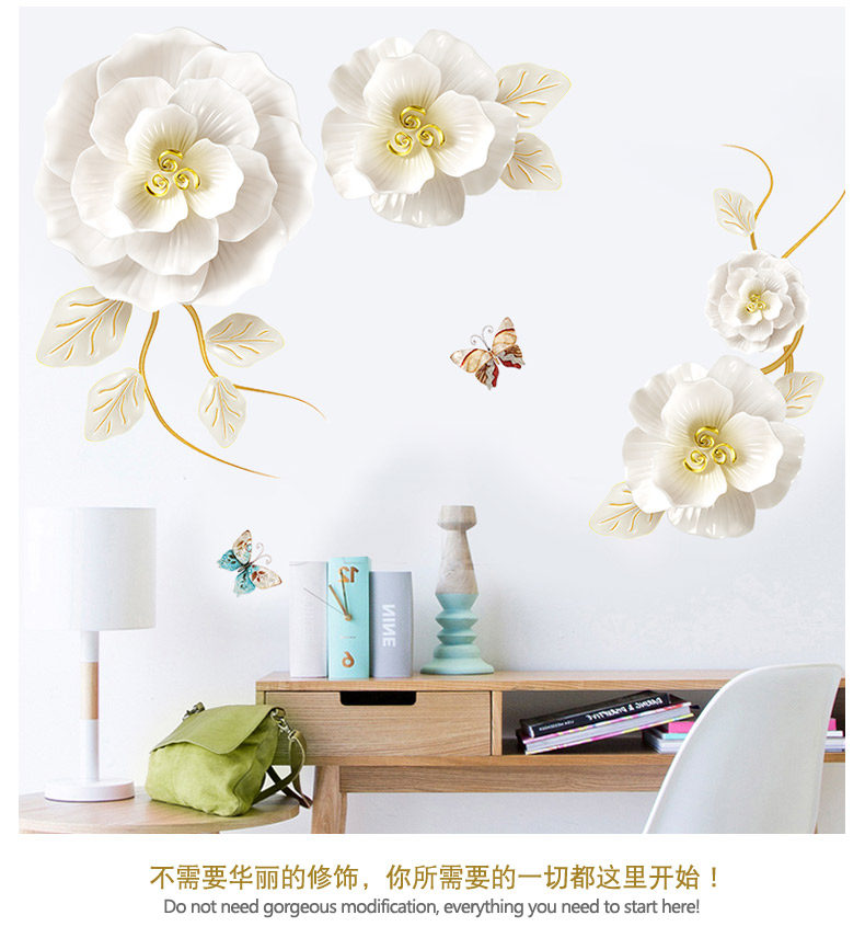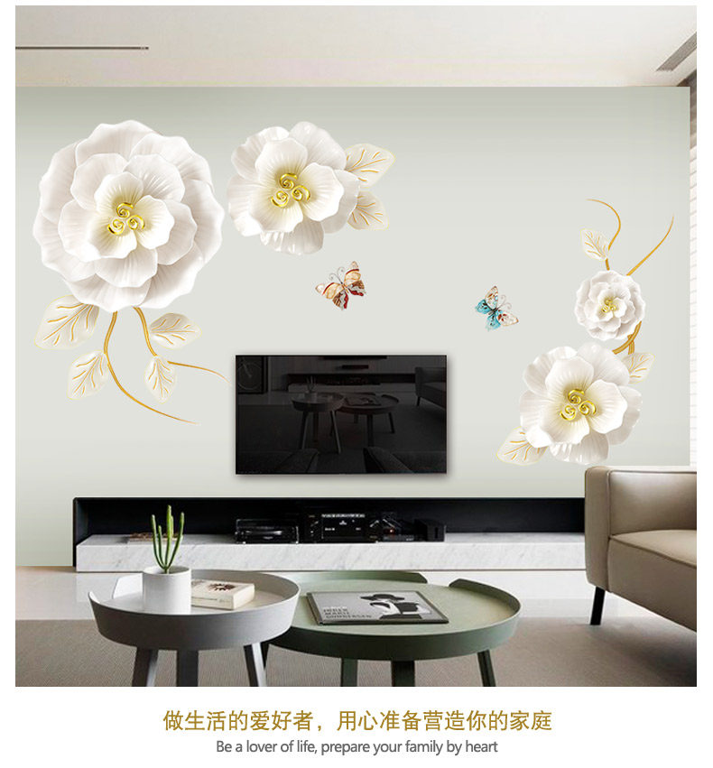 创意花朵墙纸自粘客厅沙发背景墙装饰品贴纸温馨房间卧室床头墙贴